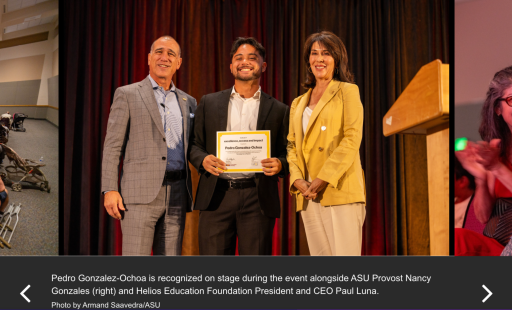 After the premiere, ASU Provost Nancy Gonzales presented each participating student with a $1,000 scholarship to continue their studies, courtesy of ASU and Helios Education Foundation. She stressed that Hispanic students do belong at ASU.
