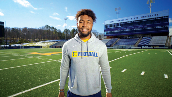 Jaquae ‘Quay’ Holmes, a standout running back, has found family on the football team and through shared experiences with student athletes at ETSU.