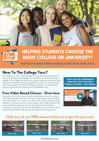 Interested in a free, personalized newsletter tailored to your school? Reach out to Gabriella at gabriella@thecollegetour.com. The newsletter provides an insightful overview of The College Tour TV series and showcases our complimentary classes. It’s the perfect resource to share with teachers, parents, and other high school administrators.