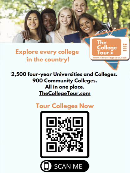 These posters, featuring QR codes, will take you straight to the TCT ‘Tour Page.’ This is a great asset to print out and put up around your high school. With a simple scan, you can find out information about every college, including the 2,500 four year Universities and Colleges and 900 community colleges in America.